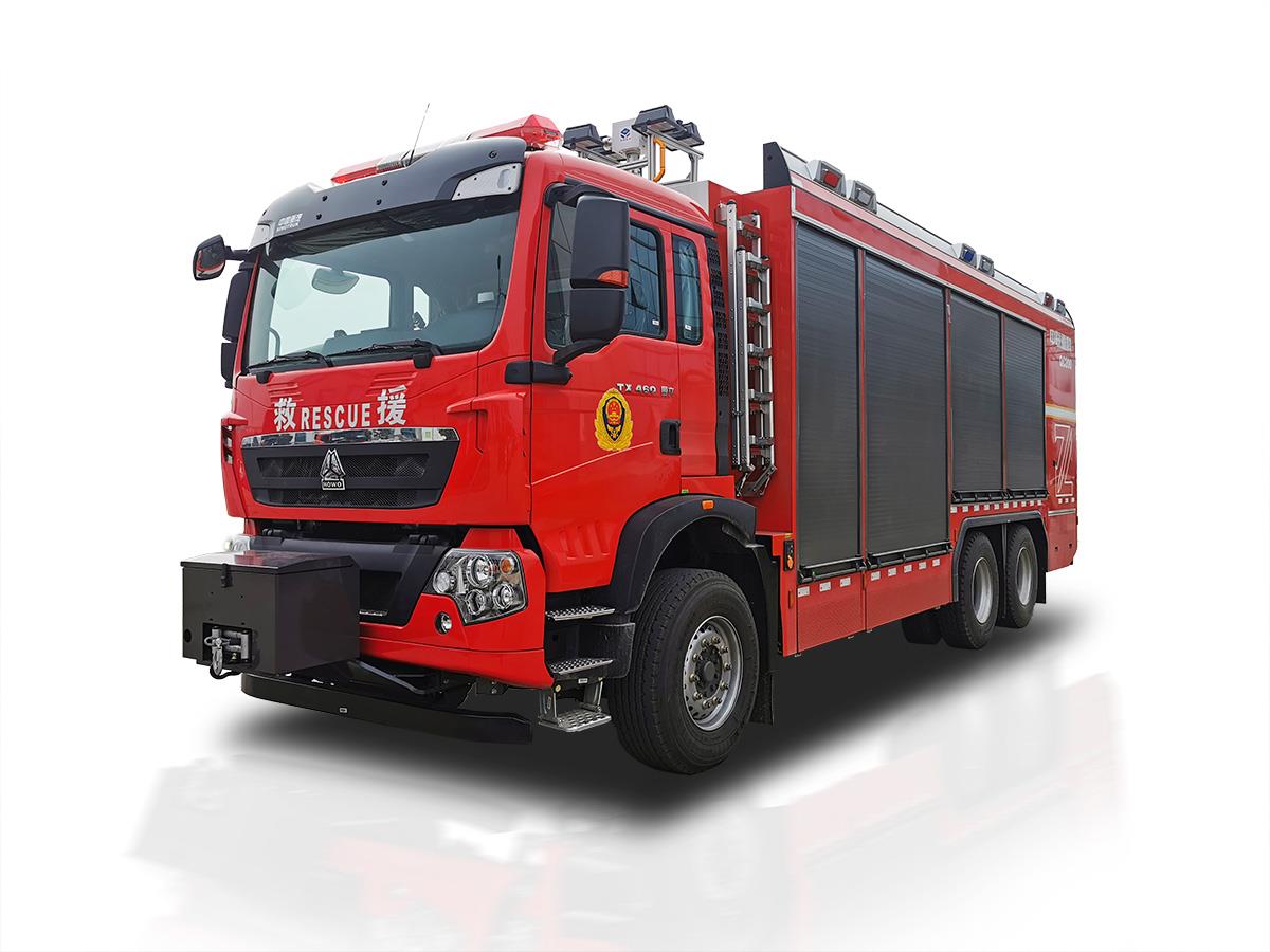 可装备绞盘、升降照明系统、液压尾板、堆垛机、液压破拆工具组、侦检器具、救生器具等超过200件抢险救援器材,是集照明、供电、牵引、起吊、破拆、侦查、救援等功能于一体的多功能消防车,是火灾、地震、抗洪、车祸等各类灾害抢险救援的主力车型。