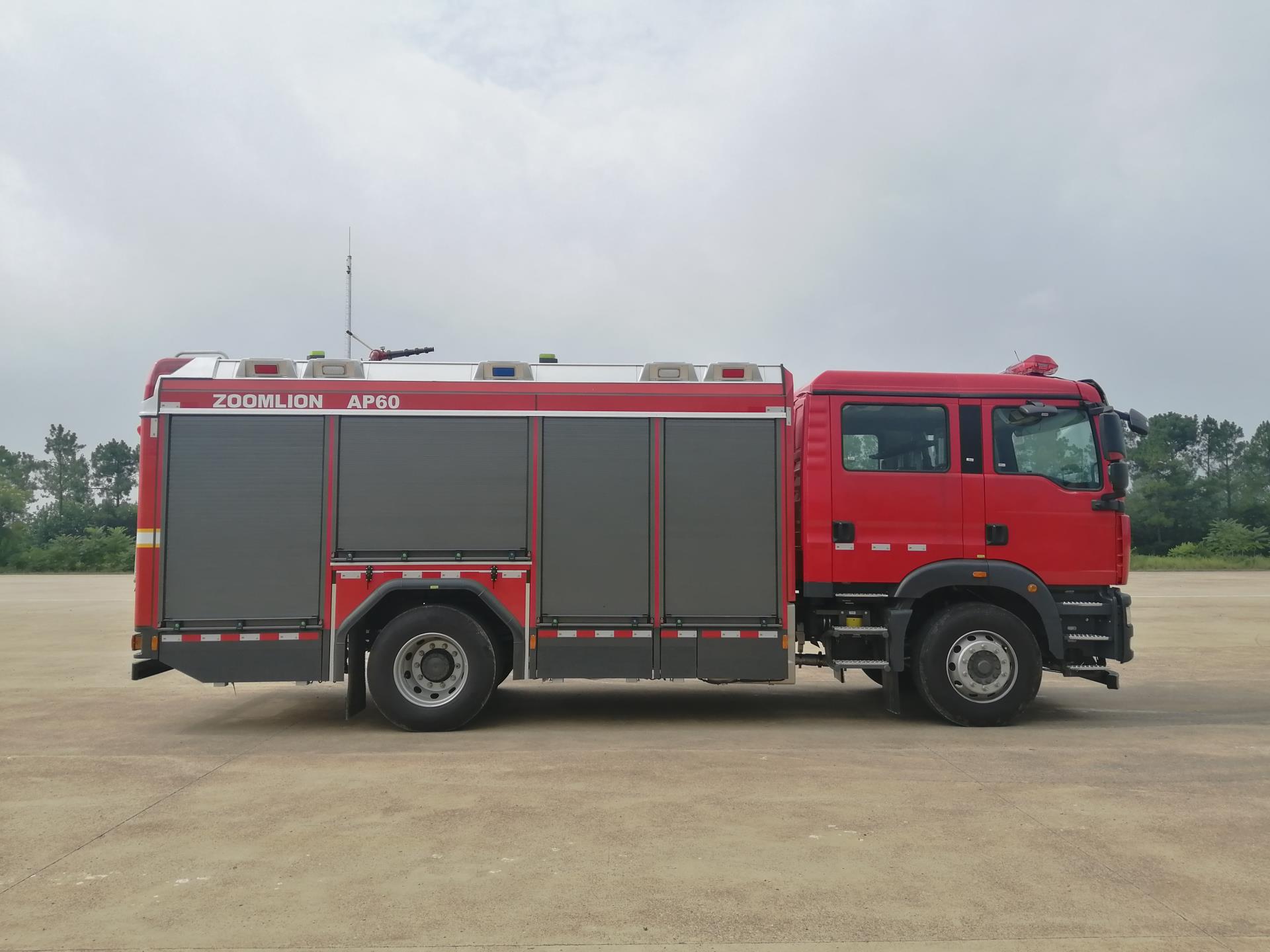 中联牌AP60城市主战消防车选用中国重汽汕德卡ZZ5206N471GF5型二类底盘,装备进口全自动压缩空气A类泡沫系统改装而成,整车外形美观,设计科学,匹配合理, 天天影视。